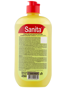 Sanita в удобном флаконе – моет до скрипа! Санита лучшее решение для безупречной чистоты и безопасности. Наше моющее средство разработано специально для удаления жира, загрязнений, неприятных запахов, обеспечивая максимальный результат при каждом мытье. Всего одна капля жидкости создаст густую пену, отлично работает даже в холодной воде, не оставляя следов, жирных пятен и разводов. Гель безопасен для рук – не сушит кожу, имеет нейтральный PH, и полностью смывается водой, не оставляя даже невидимых следов на посуде. Вы можете выбрать для себя удобный формат: от флакона 450 мл (наборы из двух штук по выгодной цене) до канистры 5 литров, и приятный аромат на Ваш вкус: сицилийский лимон и мелиса, лаванда и розмарин, грейпфрут и мята, матча и лайм, японская сакура и миндаль, мандарин и белый чай, алоэ и зеленый чай . Ступинский химический завод - официальный производитель хозяйственных товаров и бытовой химии.