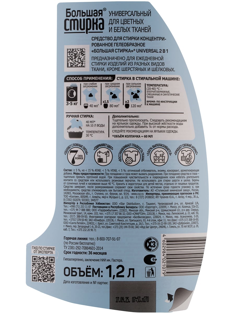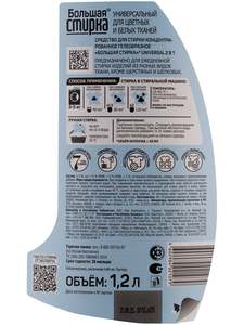 БОЛЬШАЯ СТИРКА Гель для стирки Универсальный для цветных и белых тканей 1,2л