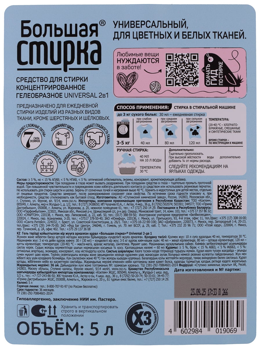 Гель для стирки БОЛЬШАЯ СТИРКА UNIVERSAL 2 в 1 5 л