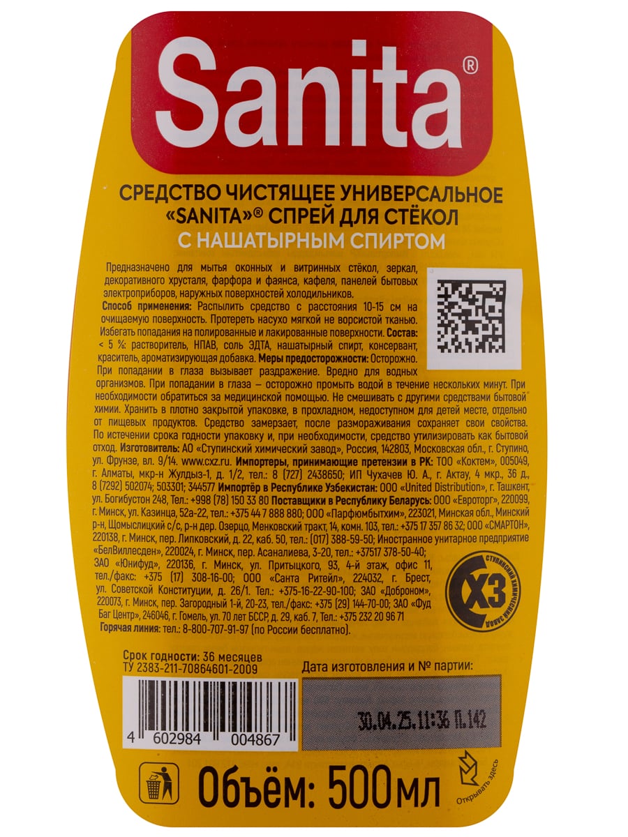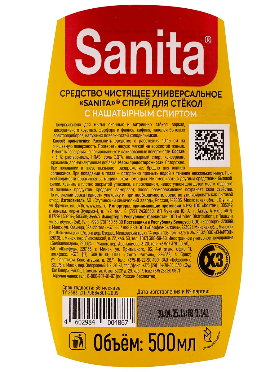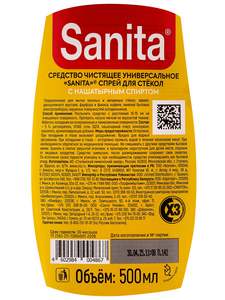Спрей SANITA для стекол и зеркал с нашатырным спиртом 500 мл