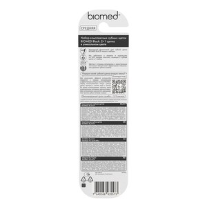 Набор комплексных зубных щеток Biomed Black: 2+1 щетка в уникальном фиолетовом цвете! Экологичное решение - для упаковки набора используется на 26% меньше пластика. Щетина Biomed Black с угольным напылением и закругленными кончиками безопасно удаляет зубной налет. Для лучшего эффекта используйте щетки с новыми натуральными пастами Biomed.