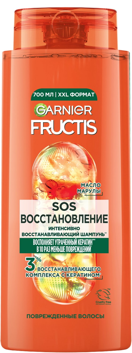 ПОВРЕЖДЕННЫЕ ЛОМКИЕ ВОЛОСЫ? Fructis представляет систему восстановления волос, которая совмещает в себе суперфрукт натурального происхождения с активными ингредиентами. Шампунь SOS Восстановление обогащен двумя суперингредиентами: Формула с маслом амлы и кератином питает и укрепляет поверхность волос по всей длине, а также восстанавливает повреждения волос, вызванные внешними воздействиями (сушка феном, тепловая укладка). Доказано! Устраняет 1 год повреждений за 3 применения. Волосы выглядят более здоровыми, шелковистыми и блестящими.