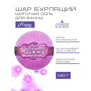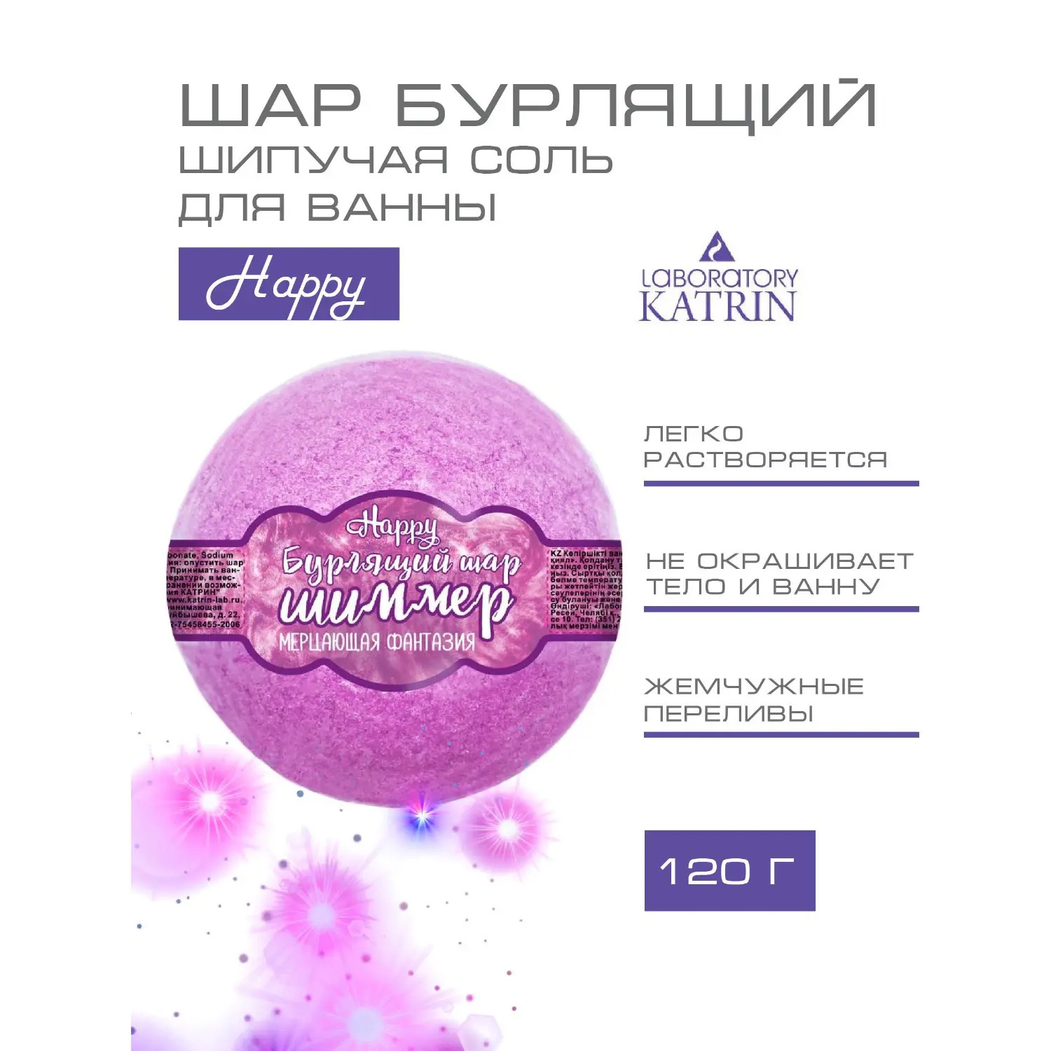 Шар бурлящий Laboratory KATRIN для ванн с шиммером Happy Мерцающая фантазия 120 г (фуксия)