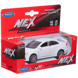 Игрушка- Welly,die cast модель машины MITSUBISHI LANCER EVOLUTION X с пружинным механизмом (pull back), масштаб 1:38, металлическая с пласт элементами