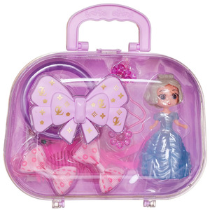 Игровой набор Junfa Фиолетовая сумочка с куколкой-принцессой в голубом платье и украшениями