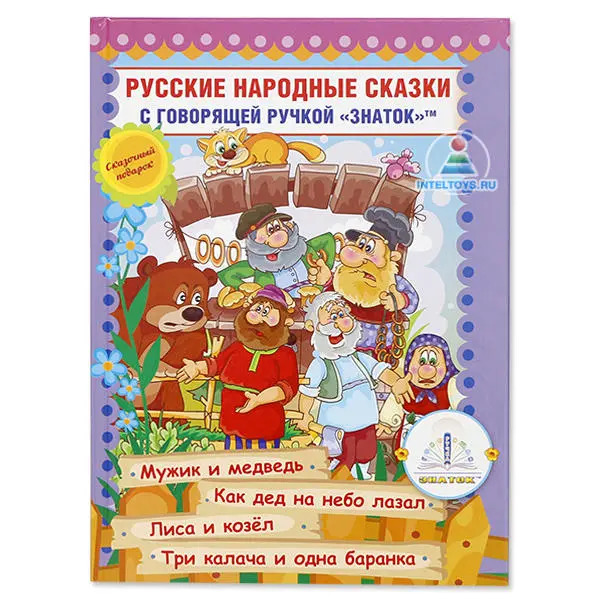 Русские народные сказки" Книга № 7 для говорящей ручки "ЗНАТОК" 2-го поколения (Мужик и медведь, Как дед на небо лазал, Лиса и козёл, Три калача и одна баранка)