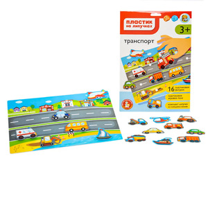 Пластик на липучках "Транспорт" в конверте А4.Состав набора: игровое поле - 1 шт. (20,5х29,5 см), пластиковые фигурки - 16 шт., комплект липучек - 18 шт. Полимерный материал. Для детей старше 3 лет.