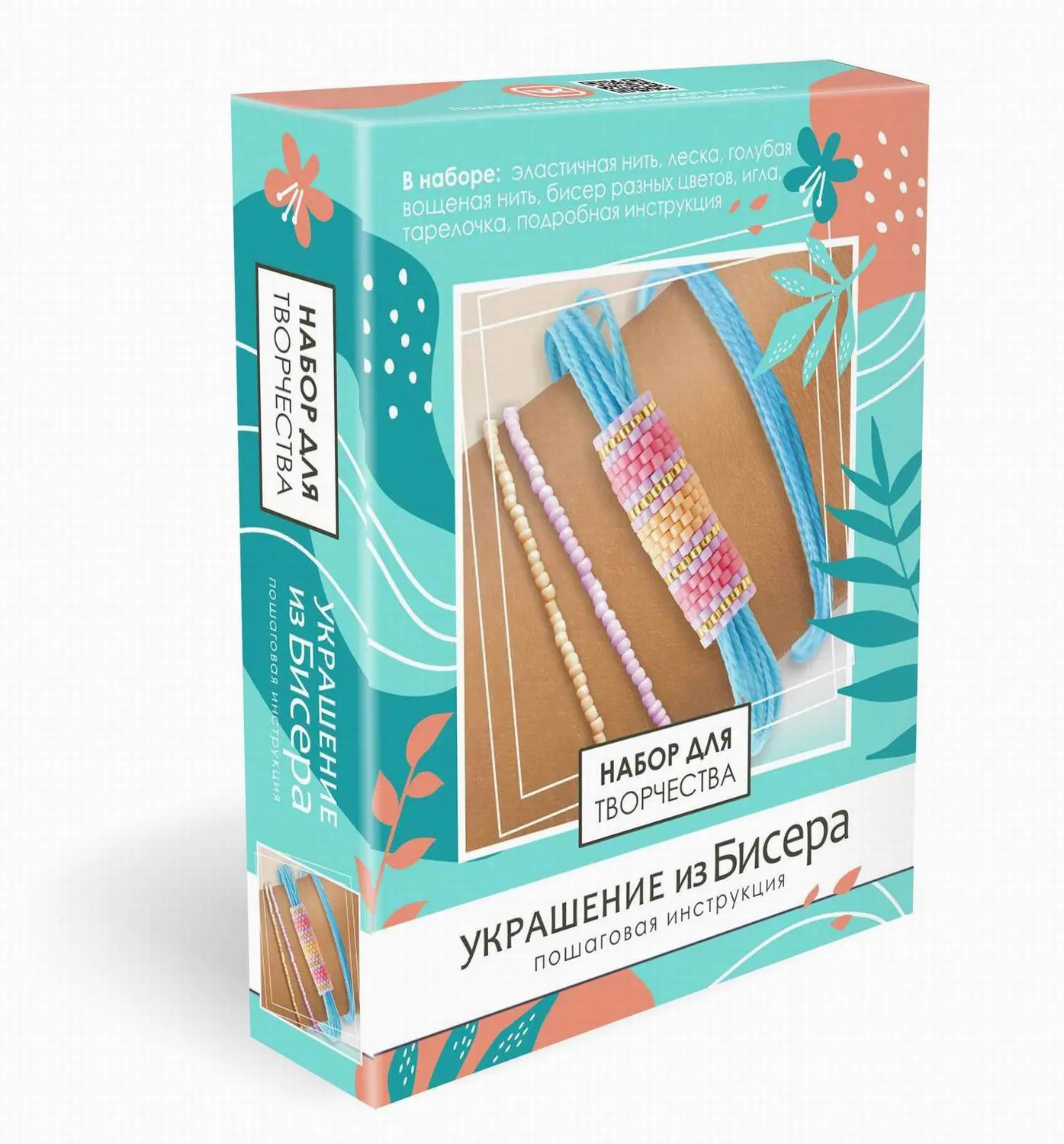Создавайте и носите стильные и современные украшения из бисера. Иллюстрированная пошаговая инструкция с советами по собираю и плетению. Просто и доступно, без сложных элементов. Вовлеченность в процесс и удовольствие от полученного результата! В наборе: эластичная нить, голубая вощеная нить, бисер разных цветов, игла, леска, тарелочка, подробная инструкция
