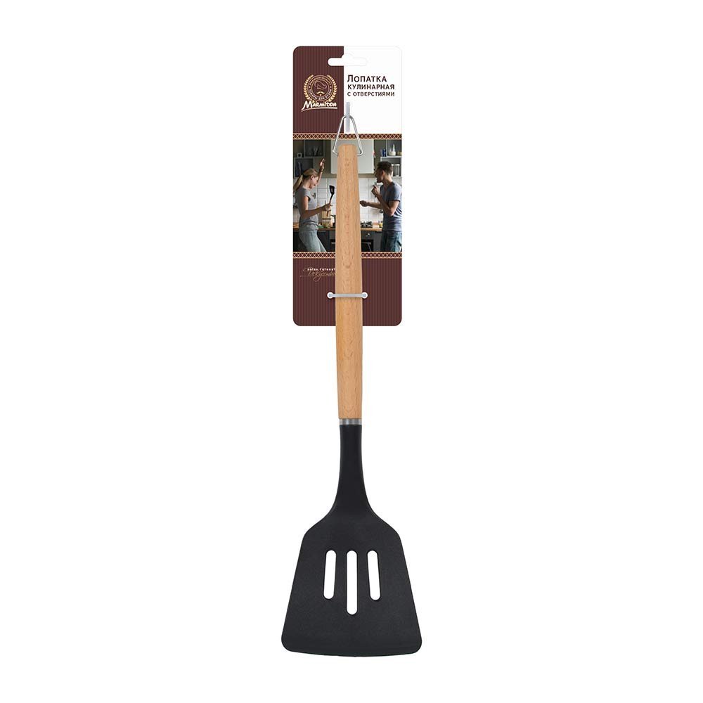 Лопатка MARMITON с отверстиями нейлоновая, буковая ручка, 33,5 см