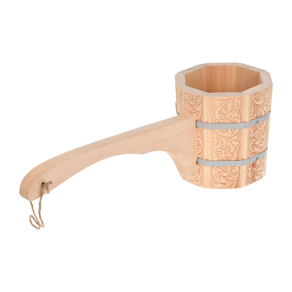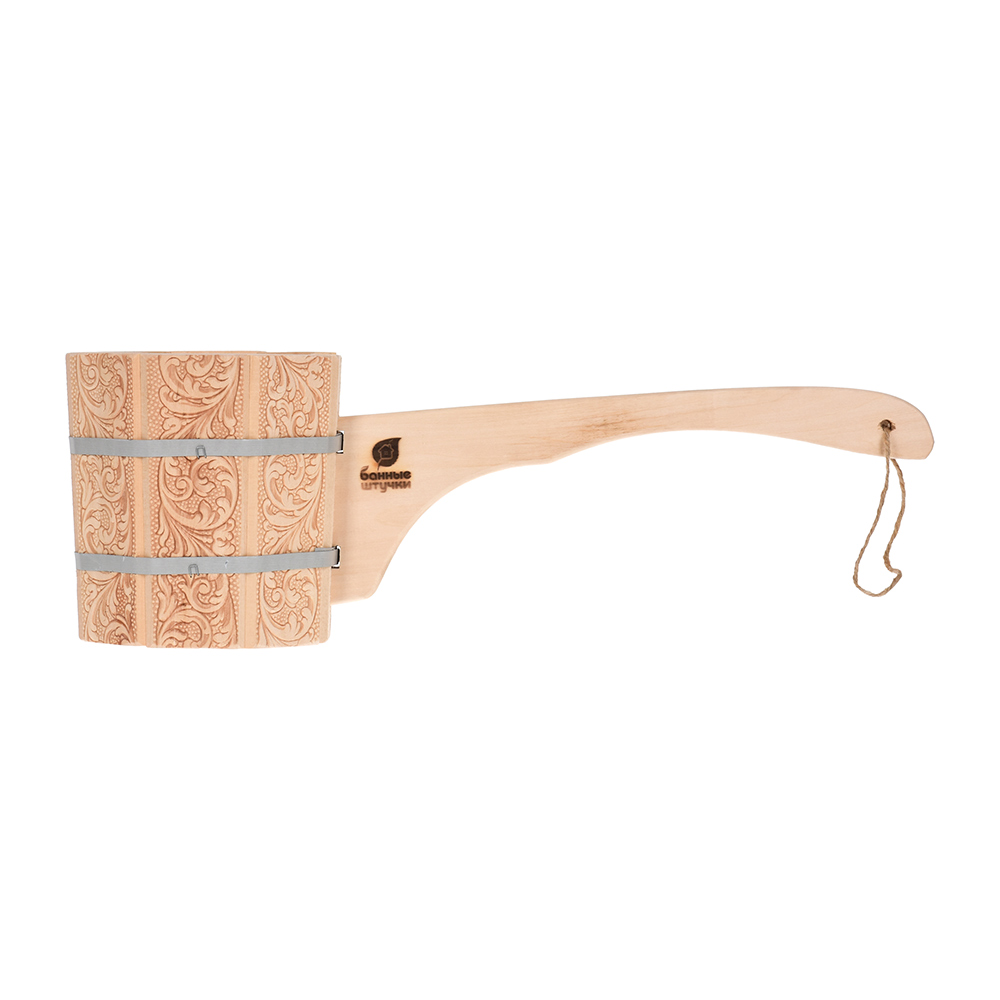Ковш - черпак Банные Штучки бондарный, 1,5 л, с длинной ручкой, с орнаментом Цветы, липа