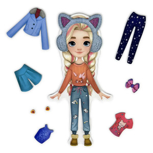 В комплекте: куколка и 24 магнитных предмета гардероба.