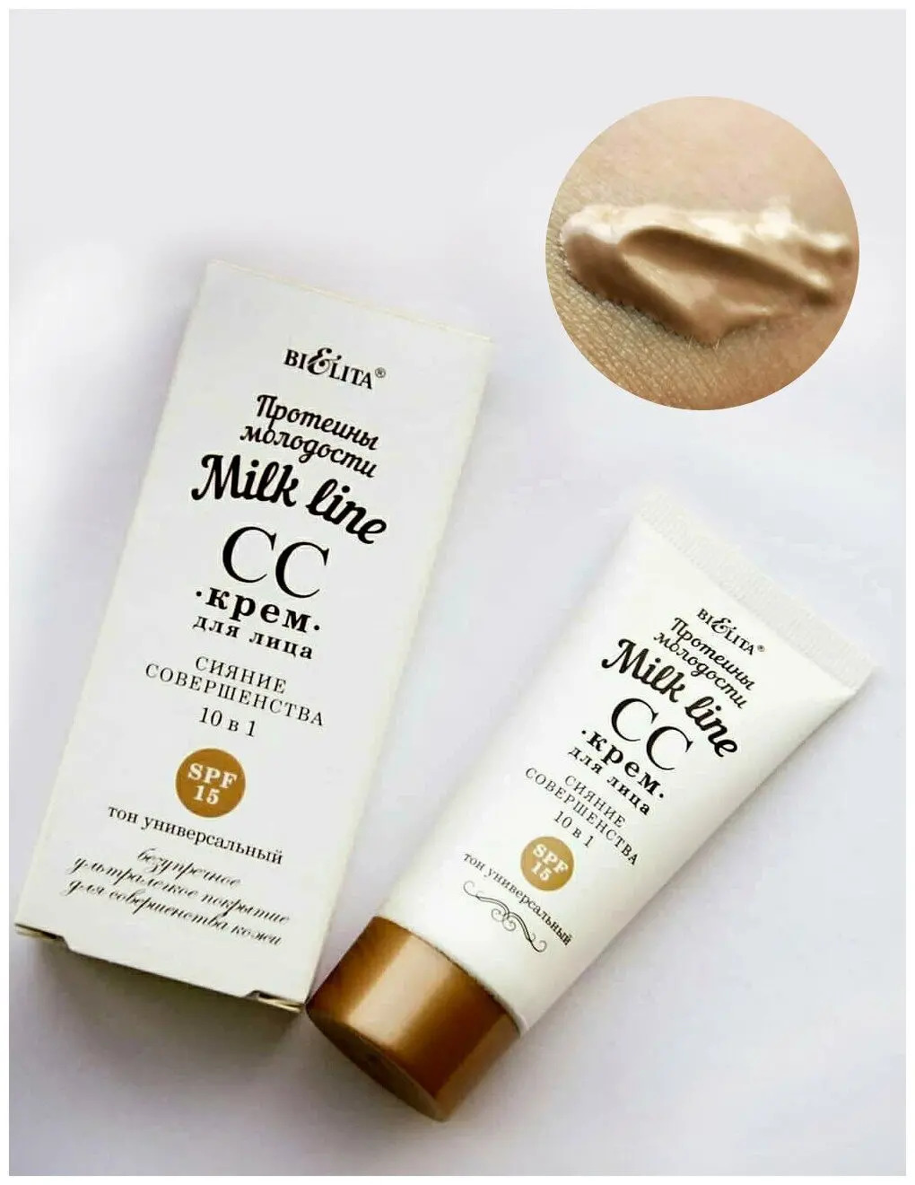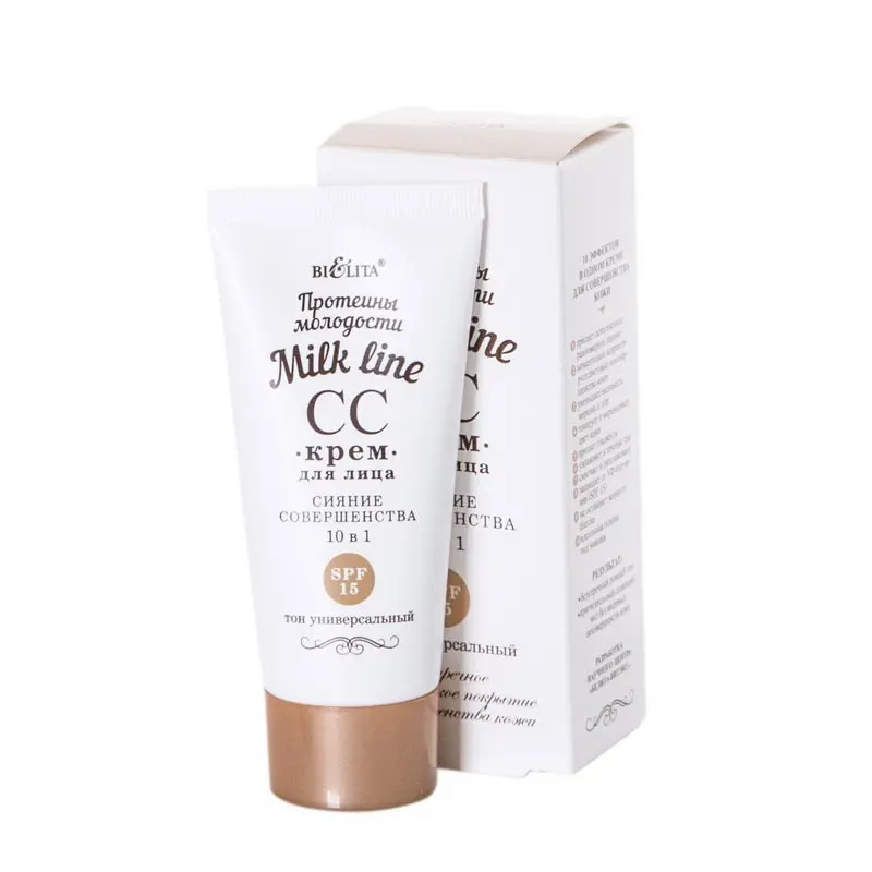 СС-крем обеспечивает безупречное тональное покрытие и при этом бережно ухаживает за кожей, улучшая ее внешний вид. Легкая формула на основе козьего молока эффективно омолаживает, разглаживает морщины, увлажняет и питает кожу. Оптические частицы мгновенно придают коже здоровый вид, выравнивают тон и обеспечивают естественное сияние. 10 эффектов в 1 креме для совершенства кожи 1. Придает естественное равномерное сияние. 2. Моментально корректирует цветовые несовершенства кожи. 3. Уменьшает видимость морщин и пор. 4. Тонирует и выравнивает цвет кожи. 5. Придает гладкость. 6. Увлажняет в течение дня. 7. Смягчает и разглаживает. 8. Защищает от УФ-излучения (SPF 15). 9. Не оставляет жирного блеска. 10. Идеальная основа под макияж. РЕЗУЛЬТАТ: безупречный ровный тон без несовершенств. Нежная бархатистая кожа излучает естественное сияние в течение всего дня.Размеры(швг): 45х107х32 мм.Страна: БЕЛАРУСЬ