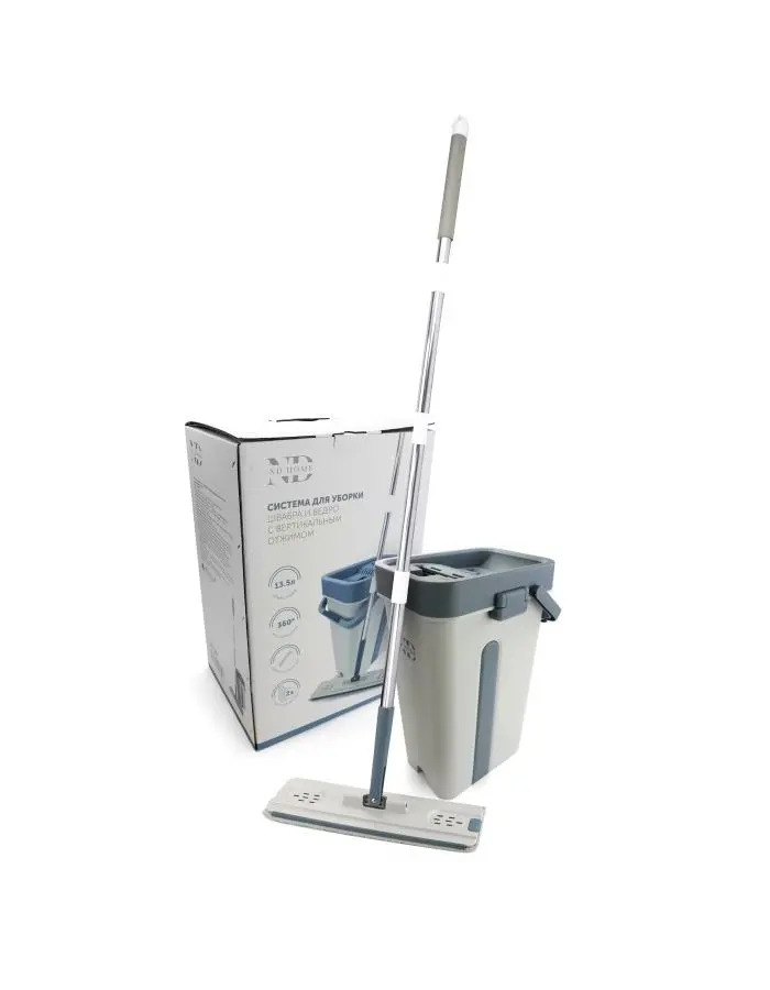 Система для уборки – незаменимый помощник для любой хозяйки. Швабра и ведро с вертикальным отливом 13,5 л помогут быстрее и проще навести чистоту в доме. Швабра с отжимом и ведром сама очищается и выжимает лишнюю воду, поэтому больше не придется мыть пол в перчатках и мочить руки.Швабра изготовлена из нержавеющей стали и не испортится, поэтому ее можно хранить внутри ведра, даже если ведро неполностью высохло. Швабра полая, сборная и легкая по весу, с мягкой накладкой на ручке. На каждой части сборной рукоятки предусмотрены заглушки: они дополнительно укрепляют конструкцию при вкручивании, чтобы не деформировалась основная часть. Утолщенная трубка, с помощью которой головка швабры соединяется с ручкой, увеличивает срок службы изделия. После уборки швабру можно раскрутить или оставить в ведре. Система вертикальной сушки предотвращает появление бактерий на насадках: они всегда будут свежими и готовыми к уборке. Плоское основание швабры и вращение на 360 градусов помогут без труда убрать пыль из труднодоступных мест. На швабре предусмотрен резиновый скребок для сбора лишней жидкости, поэтому ее удобно использовать и для очистки панорамных окон.Ведро 13,5 л с отливом разделено на 2 отсека – для грязи и чистой воды для полоскания. В отсеке для мытья есть двойная щеточка, которая помогает очистить швабру. Внизу ведра расположены сливные отверстия, поэтому ведро не нужно поднимать и напрягать спину во время слива воды. Ведро изготовлено из ударопрочного пластика с надежными креплениями. Ручка ведра смещена по центру тяжести. Система очистки выжимает насадку и снимает грязь со швабры. Сменные насадки из микрофибры полностью фиксируются на швабре, поглощают влагу в несколько раз больше своего веса и предотвращают образование пятен. Благодаря этому можно не использовать моющие средства во время уборки. В комплект системы входят 2 сменные насадки. Ткань очищает грязь, пыль и другой мусор с любых твердых поверхностей: мрамор, плитка, ламинат, виниловые и деревянные полы. Двухкамерная система для влажной уборки с отжимом и полосканием поможет сократить время уборки в 2-3 раза.