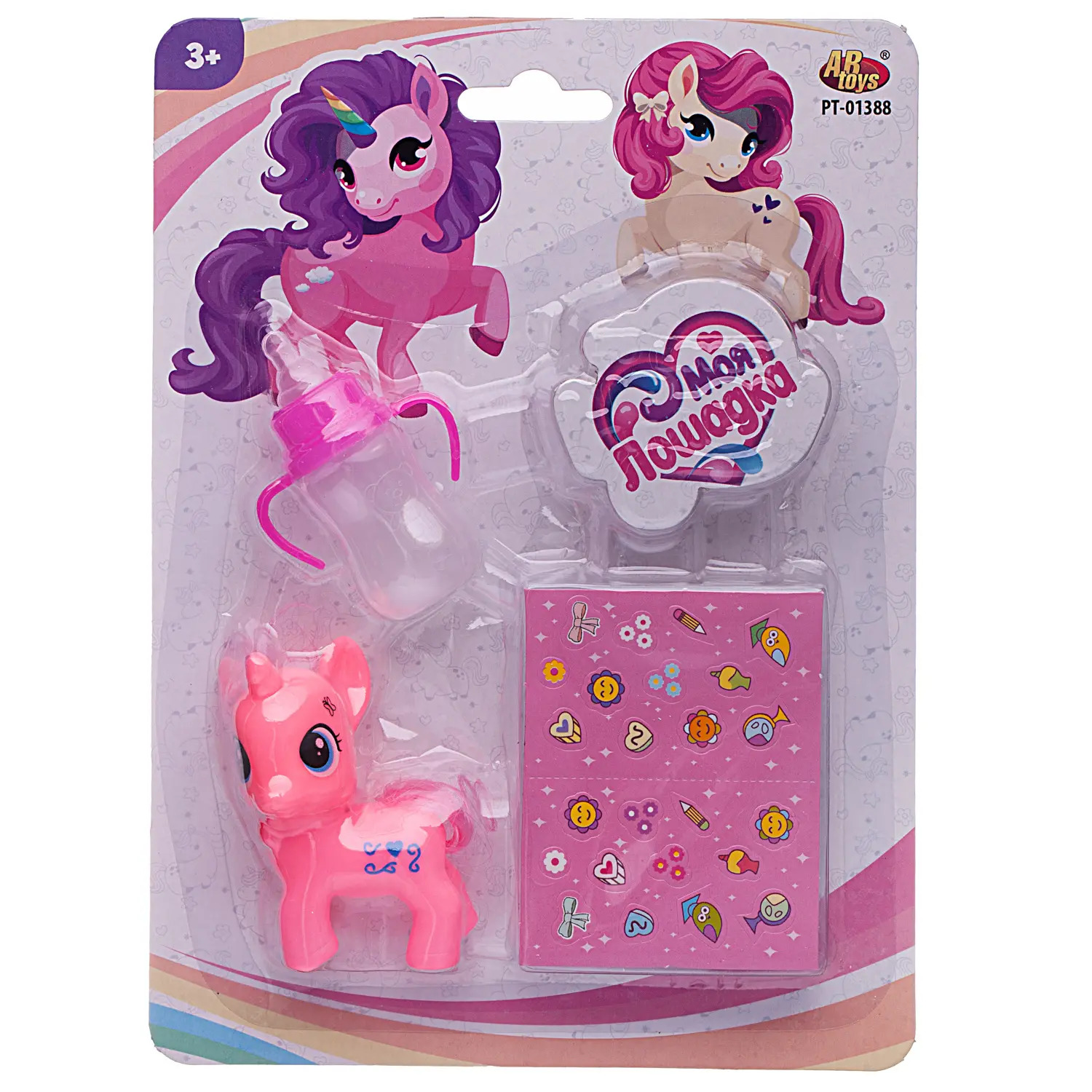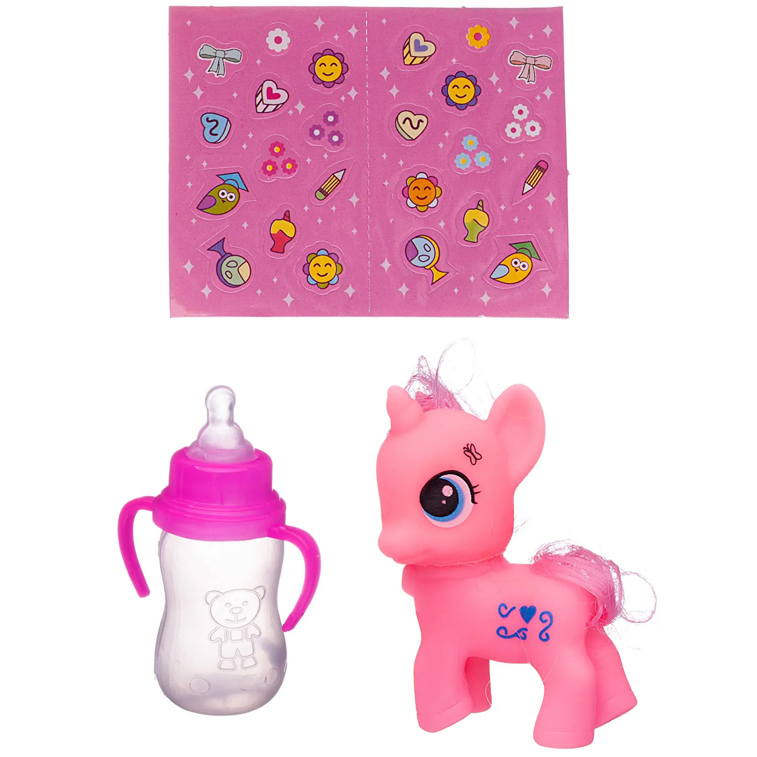 Игровой набор Abtoys Моя лошадка Пони-единорог розовая с бутылочкой-поильником и наклейкам СИМВОЛ ГОДА 2026