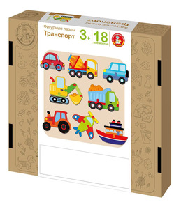 Пазлы из дерева. Фигурные пазлы "Транспорт" 18 эл. Состав игры: пазлы из древесного материала - 8 шт. Размер каждого примерно 8х10 см. Древесный материал, картон. Игра предназначена для детей старше 3 лет.