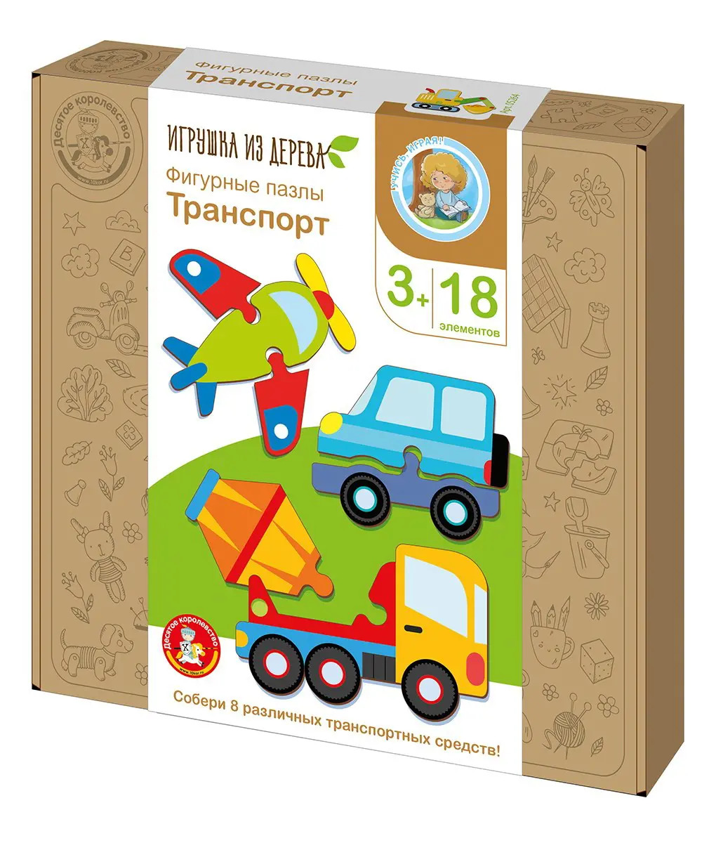 Пазлы из дерева Десятое королевство Фигурные пазлы Транспорт 18 элементов