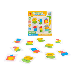 Игра обучающая "Фигурный переполох" серия Учись, играя. Состав:игровые карточки из картона - 60 шт., правила игры. Материалы: картон, бумага. Рекомендовано для детей старше 3 лет.
