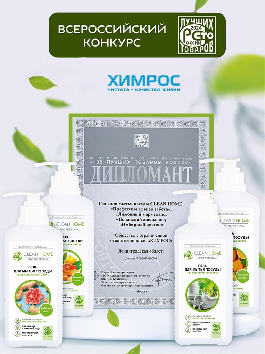 CLEAN HOME Гель для мытья посуды Испанский апельсин с дозатором 1л
