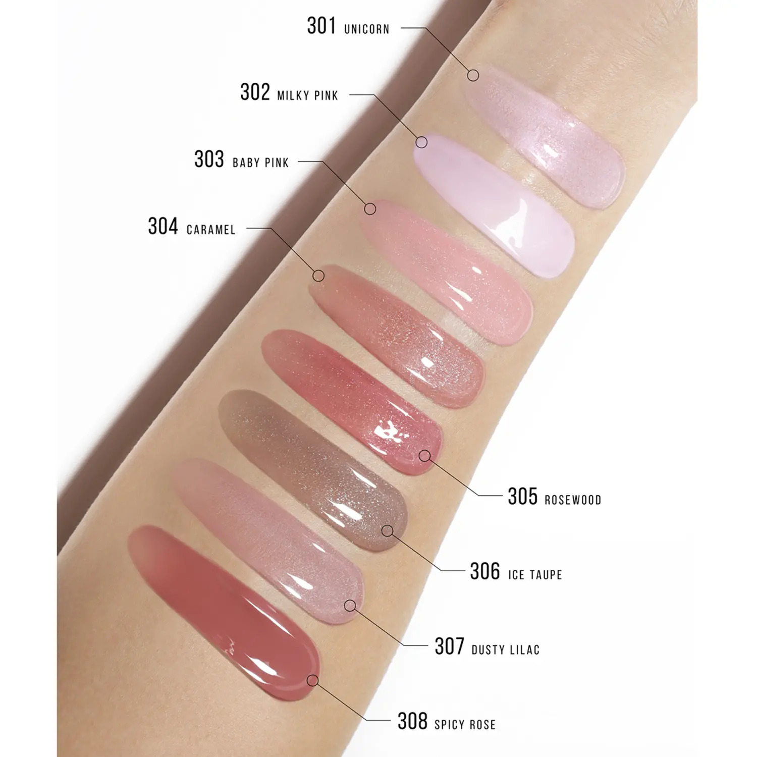 8 нюдовых оттенков с мерцающим шиммером придают губам соблазнительный влажный финиш и роскошное сияние, дополнительный объем и гладкость.