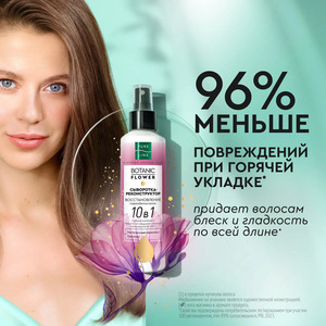 Несмываемая сыворотка также интенсивно питает ваши волосы, увеличивает их плотность и объем, не утяжеляя их. Благодаря быстрому впитыванию, вы получите блеск и гладкость волос уже после первого применения. Действует как увлажняющий термоспрей.