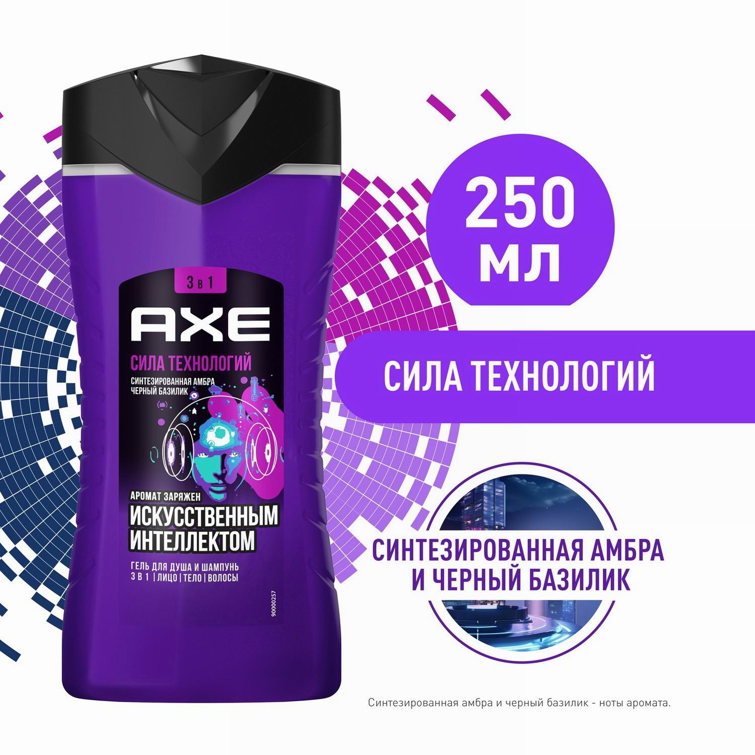 Встречай средство для личной гигиены от Акс, вдохновлённое миром современных технологий! Продукт 3в1 одинаково хорош как шампунь для волос, средство для умывания лица и гель для душа.Акс шампунь мужской 3в1 Сила технологий имеет классный аромат, заряженный искусственным интеллектом. Запах средства представляет собой коктейль из пряных, древесных и сладких нот с неожиданно дерзким мужским характером. Здесь солируют черный базилик, амбра и ананас, смягченные нотками пралине и сандала, каштана и ванили. Если игра на контрастах тебе по вкусу, то этот шампунь и гель для душа мужской заслуживает твоего внимания!