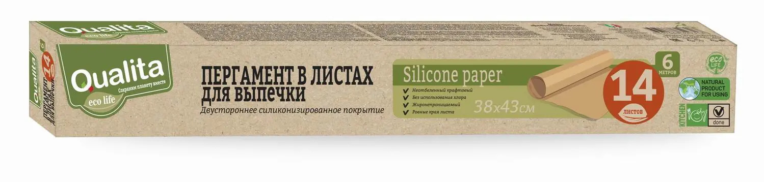 QUALITA Пергамент для выпечки в коробке 6м 14 листов