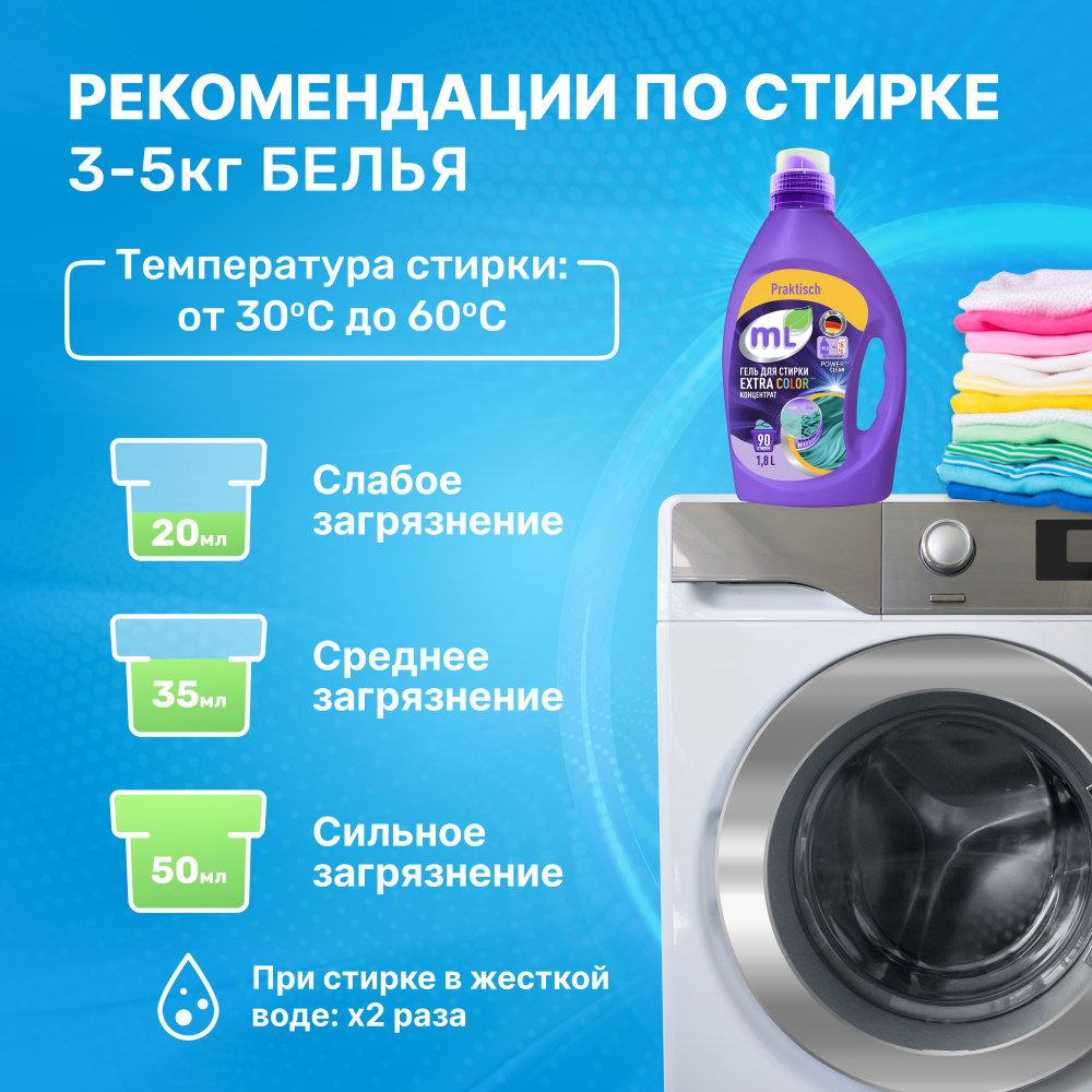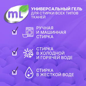 Защищает структуру и цвет тканей даже при многократных стирках.Подходит для всех типов тканей (кроме шерсти и шелка). Предотвращает потерю формы. Удаляет повседневные загрязнения.