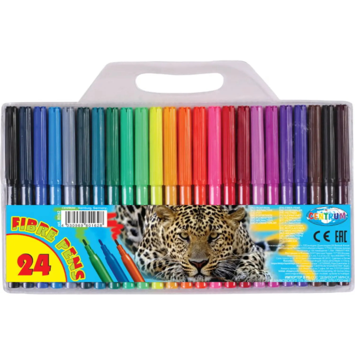 Фломастеры Centrum, это широкая цветовая гамма, яркая привлекательная упаковка, а также непревзойденное качество и безопасное использование. Разнообразие палитры отличается насыщенностью и яркостью цветов, что позволяет создавать всевозможные цветовые композиции, раскрывая в полной мере творческий потенциал. Вентилируемый прозрачный колпачок защищает чернила от высыхания и испарения, тем самым продлевая срок службы изделий. Специальный фетровый наконечник не вдавливается при нажатии, плавно и мягко скользит по бумаге, позволяя быстро и качественно закрашивать большие участки изображения. Чернила на водной основе соответствуют всем заявленным требованиям качества, устойчивы к перепадам температур, обладают морозостойкими свойствами. В наборе 24 цвета.