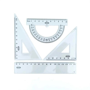 Набор чертежных принадлежностей Centrum. Изделия изготовлены из высококачественного прозрачного пластика. Качественная маркировка обеспечивает яркое и четкое нанесение информации. В наборе: линейка - 15 см., 2 треугольника и траспортир. Прозрачная упаковка с европодвесом.