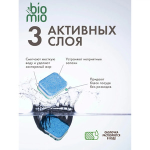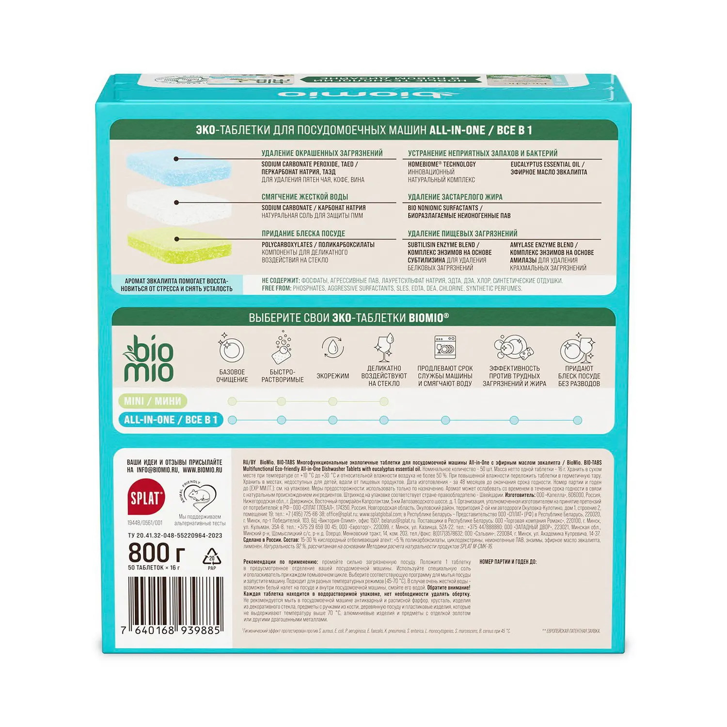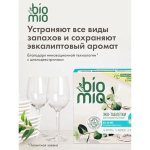 BioMio Таблетки для посудомоечной машины Эквалипт 16г /50шт.Экологичные многофункциональные таблетки с эфирным маслом эвкалипта для посудомоечных машин на 92% состоят из натуральных компонентов. Содержат функции соли и ополаскивателя в одной таблетке. Продлевают срок службы машины. Благодаря инновационной технологии HomeBiome в составе устраняют до 99% бактерий кишечных инфекций (от кишечной палочки до сальмонеллы) и нейтрализуют неприятные запахи. Безопасны для детской посуды, бутылочек. Биоразлагаемы, безопасны для септиков.