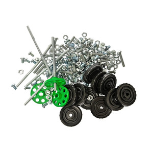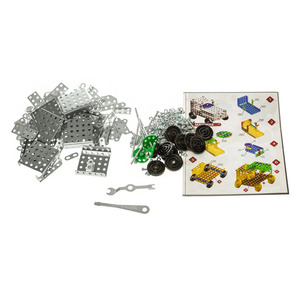 Металлический конструктор набор №3 в деревянной упаковке содержит наибольшее количество деталей, из трех конструкторов, входящих в серию, следовательно, возможностей собрать что-то свое, помимо пятимоделей, представленных в инструкции, гораздо больше. При этом, стоит он ненамного дороже и если ради любопытства, разделить стоимость конструктора на количество деталей - 292, то получим самую низкую