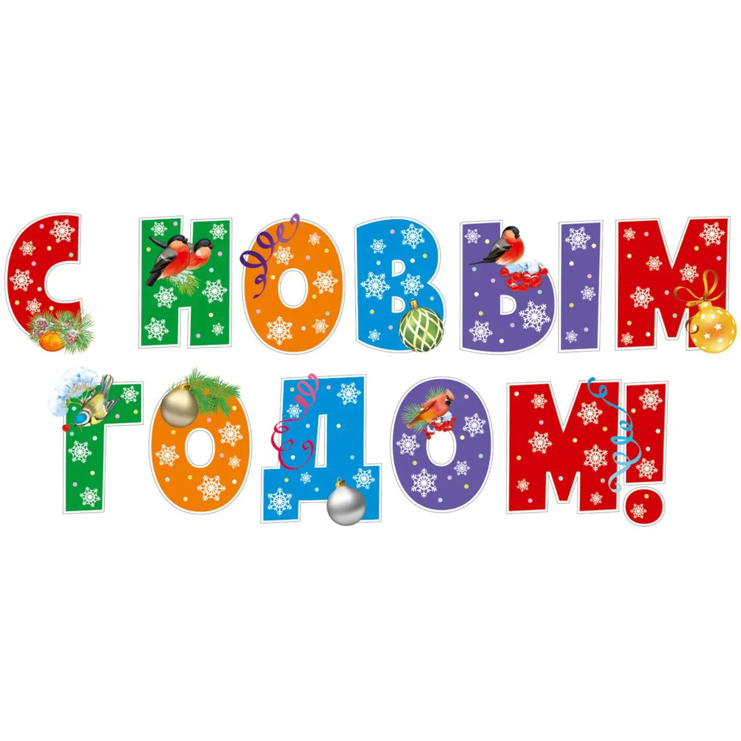 Комплект вырубных букв на скотче С Новым годом! 11 штук