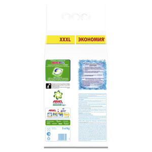 Стиральный порошок автомат Ariel Горный родник для стиральной машины предназначен для стирки белого и цветного белья. Благодаря технологии Аквапудра, порошок для стирки Ariel Color растворяется, едва коснувшись воды, и моментально активируется: глубоко проникает в структуру волокон и удаляет сложные пятна, не давая загрязнениям въедаться. Ariel Color удаляет даже невидимые загрязнения, устраняя неприятные запахи и предотвращая пожелтение белых вещей, в том числе на воротничках и манжетах. А выгодная упаковка 9 кг позволяет сэкономить на стоимости каждой стирки по сравнению с покупкой маленькой упаковки.Преимущества Ariel Горный Родник:
