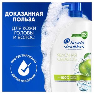 Шампунь против перхоти Head & Shoulders (Хэд энд Шолдерс) с ароматом Яблока подходит для всех типов волос и кожи головы. Обеспечивает до 100% защиты от перхоти*. Эффективен даже против стойкой перхоти.Удобная бутылка с дозатором позволяет наслаждаться любимым шампунем для волос еще дольше и сократить количество отходов. Просто нажмите на дозатор, чтобы начать использование.