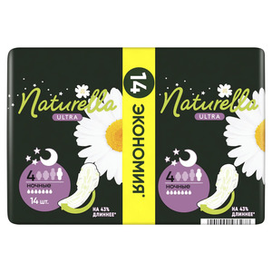 Naturella Ultra Night с крылышками DUO Прокладки женские Ромашка (4уп.х14шт.) 56шт.