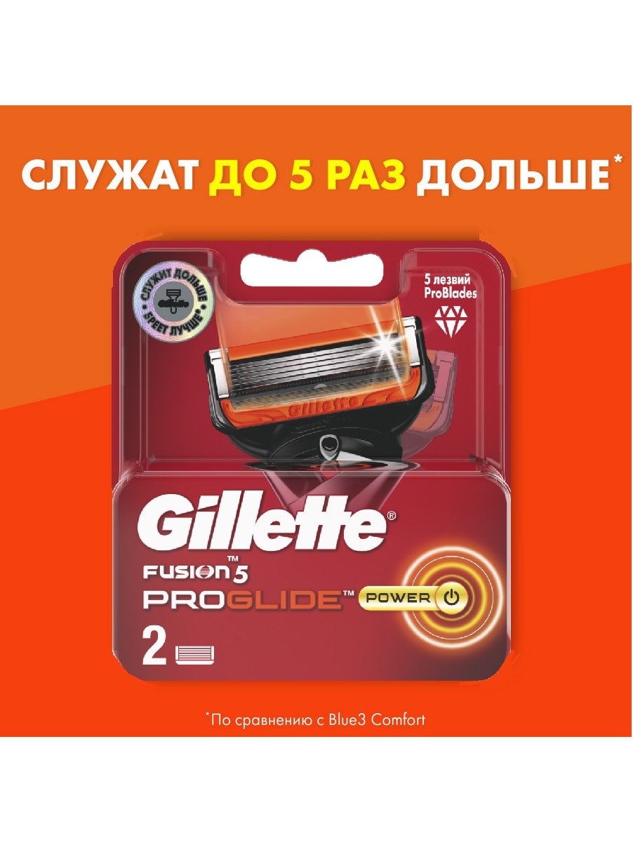 Комплектация: сменные кассеты Gillette Fusion 5 ProGlide Power для бритвенного станка для мужчин, в упаковке 2 шт.