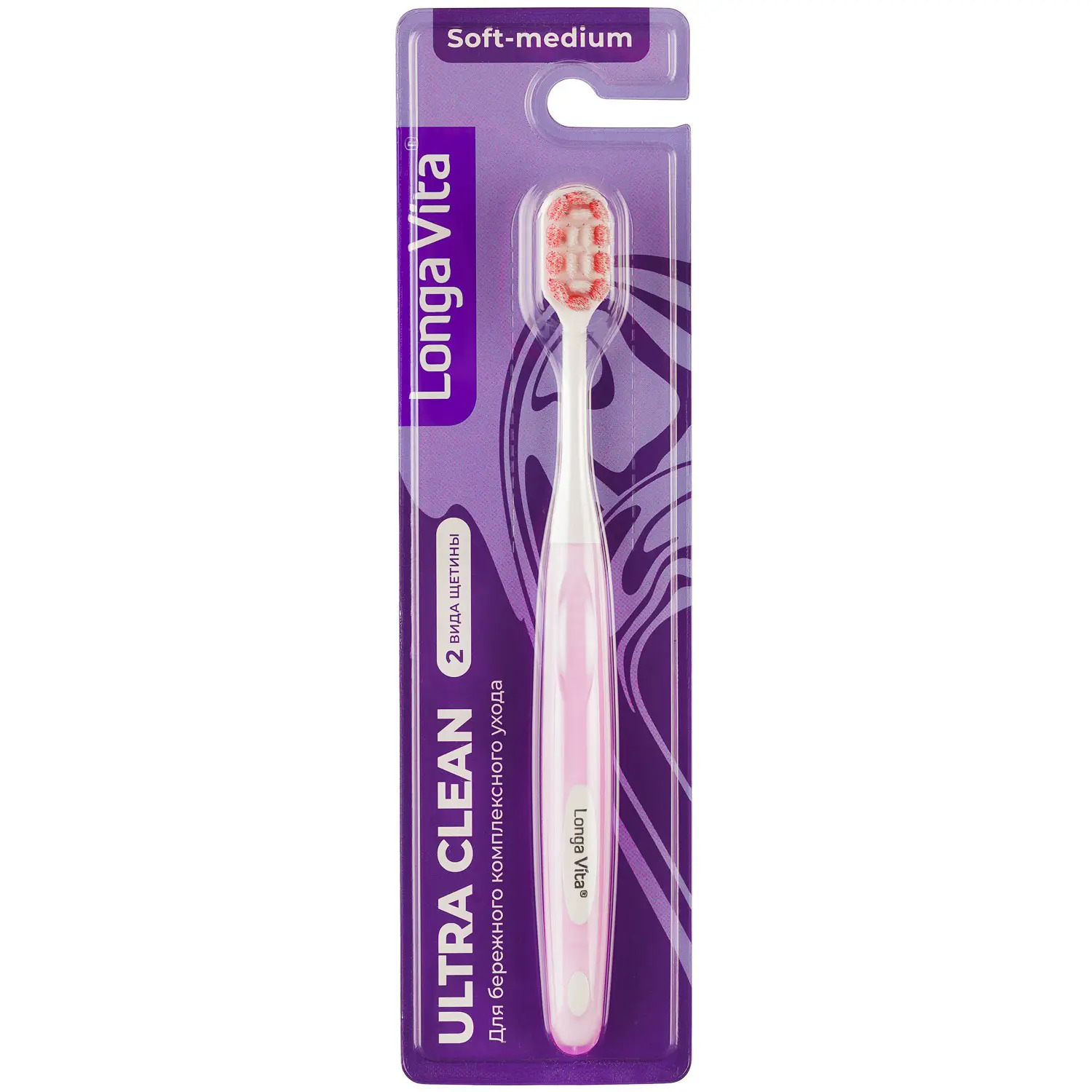 Микс двух видов щетинок для комплексного ухода за полостью рта. Мягкие закругленные щетинки эффективно очищают зубной налет и нежно массируют десны. Утонченные спиралевидные щетинки средней жесткости обеспечивают тщательное очищение труднодоступных мест. Эргономичная прорезиненная ручка позволяет контролировать весь процесс чистки