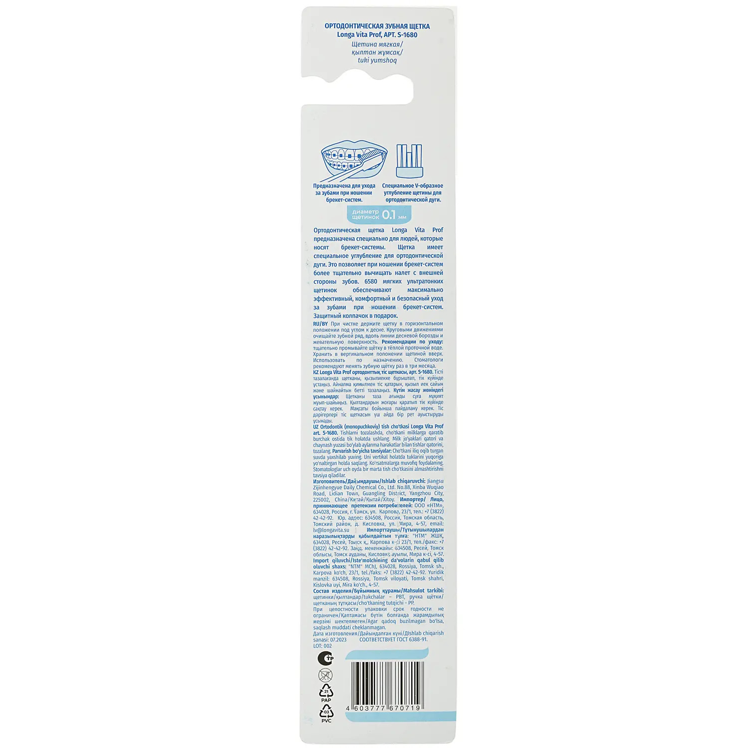 Ортодонтическая щетка предназначена для людей, которые носят брекет-системы. Щетка имеет специальное углубление для ортодонтической дуги. Это позволяет при ношении брекет-систем более тщательно вычищать налет с внешней стороны зубов. Мягкие щетинки обеспечивают максимально эффективный, комфортный и безопасный уход за зубами при ношении брекет-систем