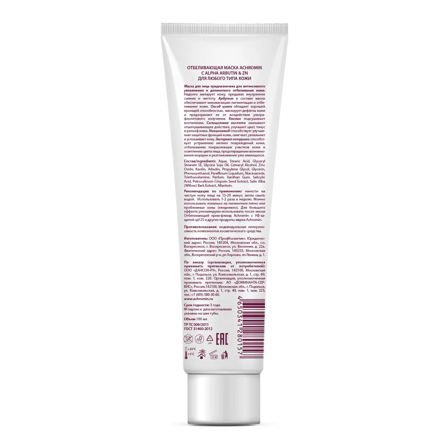 ACHROMIN Маска отбеливающая с ALPHA ARBUTIN & Zn 100 мл