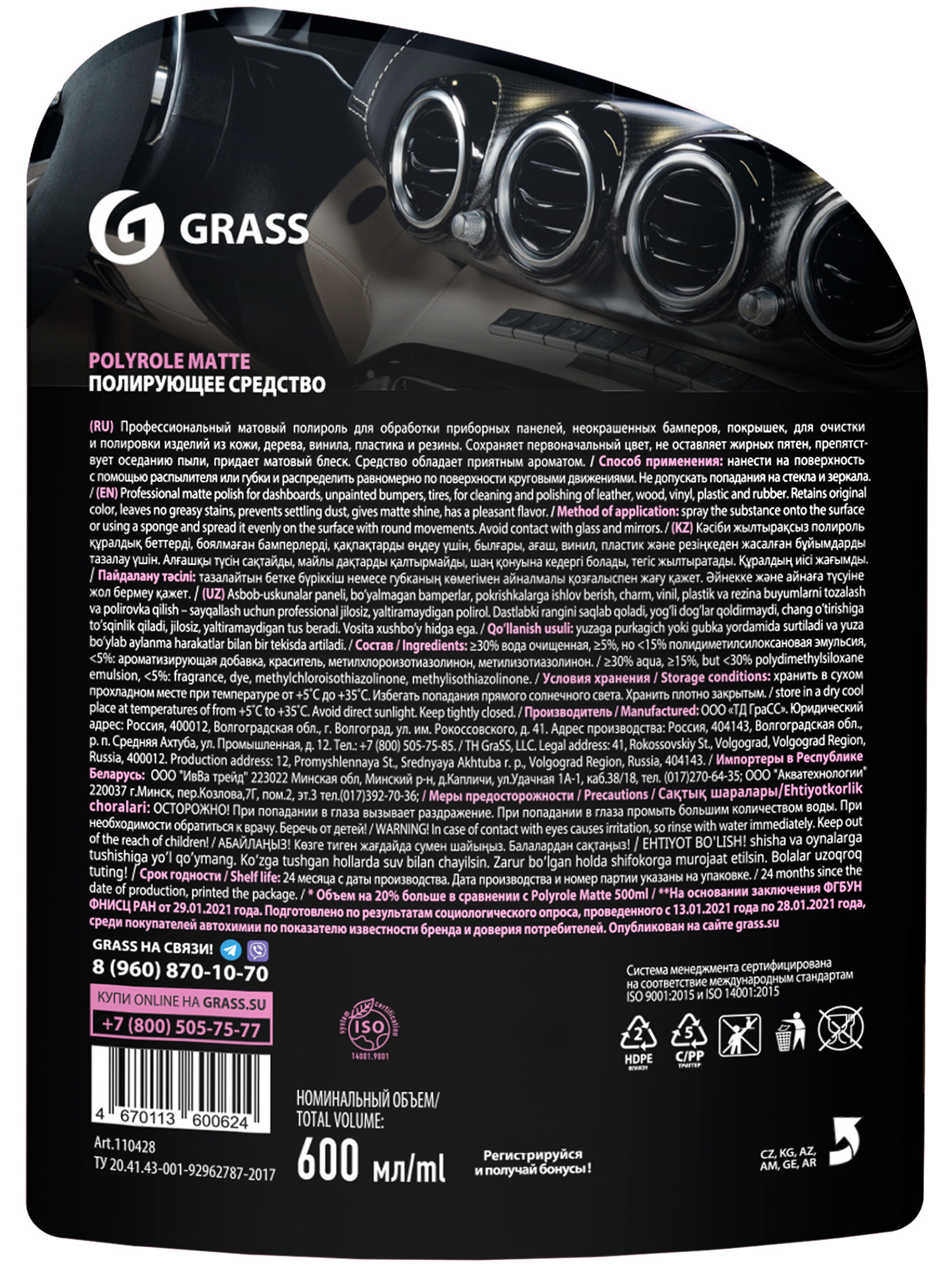 Grass Полироль-очиститель пластика матовый Polyrole Matte