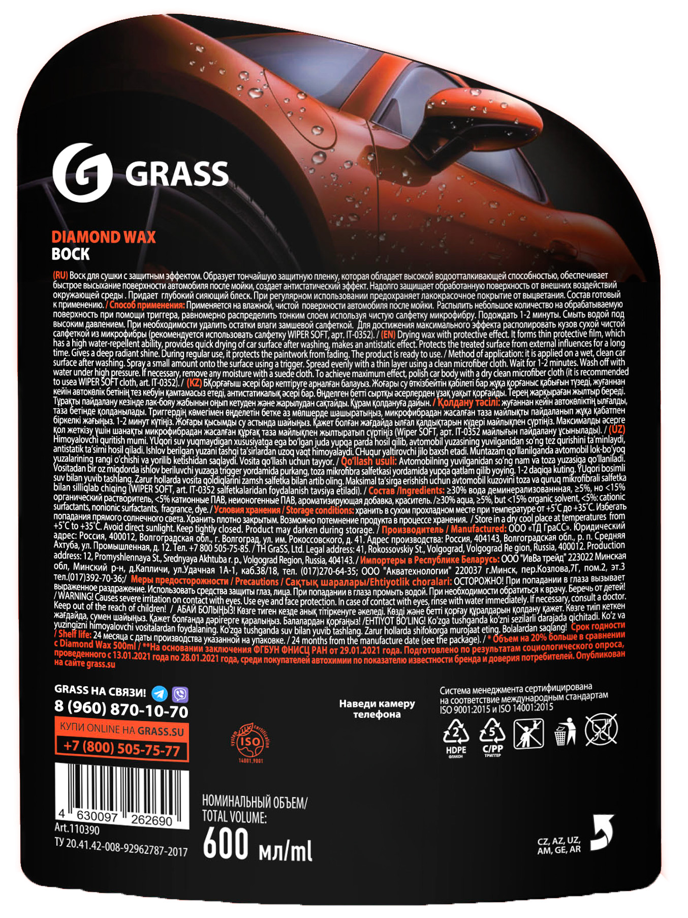 Grass Воск для сушки с защитным эффектом Diamond Wax 600мл