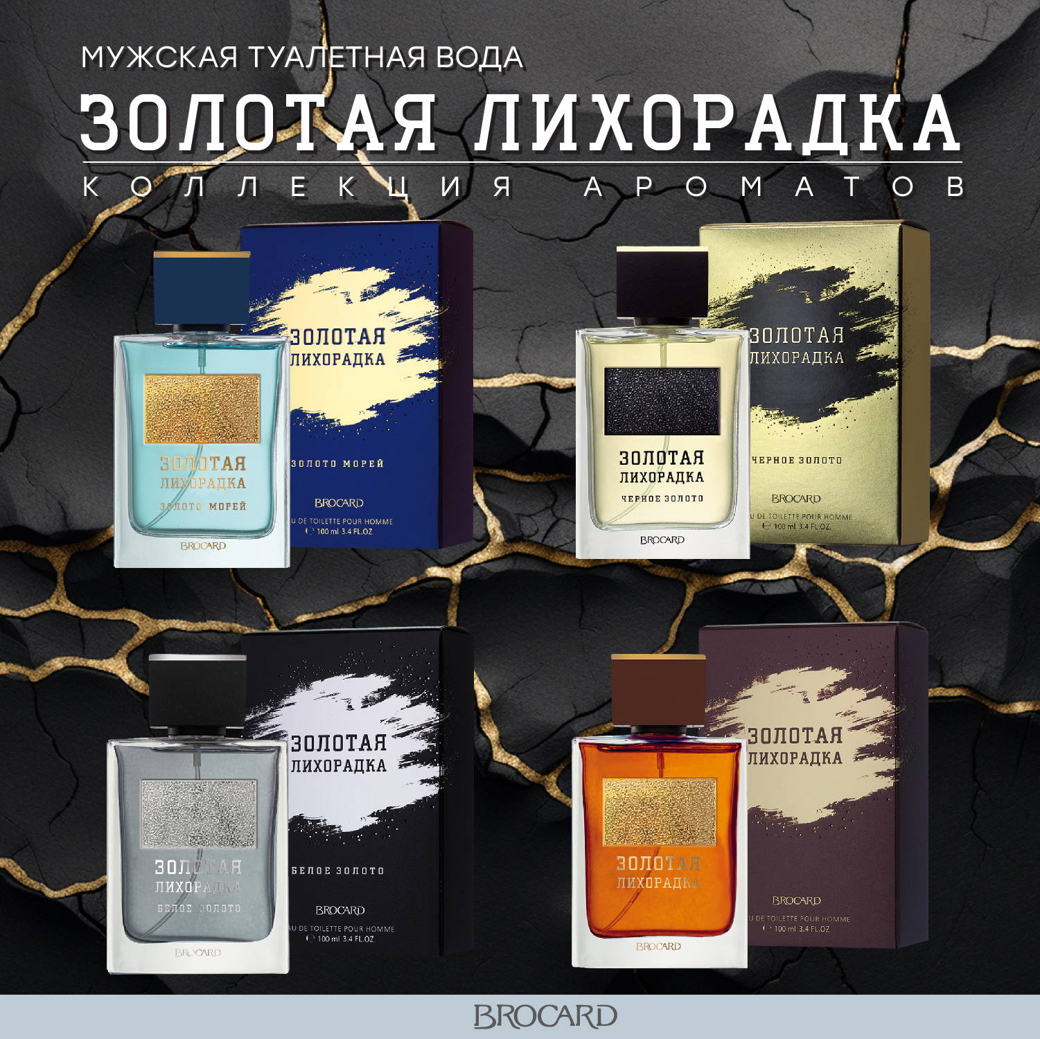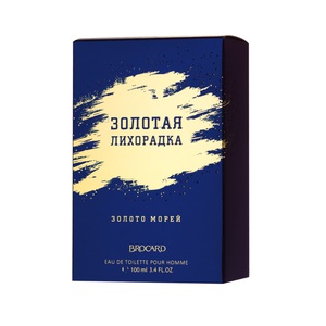 Мужская туалетная вода Brocard «Золото Морей» коллекция «Золотая Лихорадка», 100мл. Аромат свежий, молодой, яркий, искрящийся, таящий в себе страсть к приключениям и новым открытиям.Взрывное цитрусово-акватическое начало композиции уравновешено слегка пудровым оттенком ириса и зеленой терпкостью розы, подчеркнуто пряностью мускатного ореха и прохладой мятного листа.