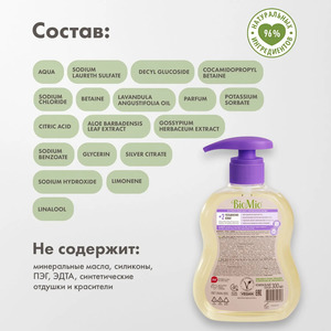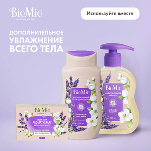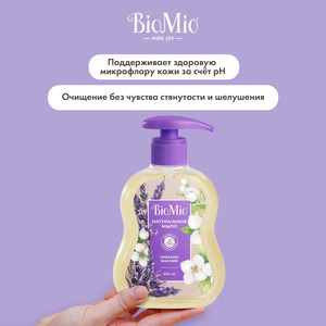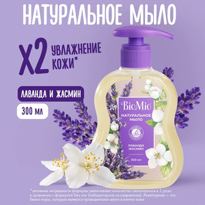 Гипоаллергенное натуральное жидкое мыло Biomio лаванда-жасмин мягко и деликатно очищает и одновременно увлажняет кожу рук. На 96% состоит из натуральных ингредиентов. Эфирное масло лаванды расслабляет и успокаивает!