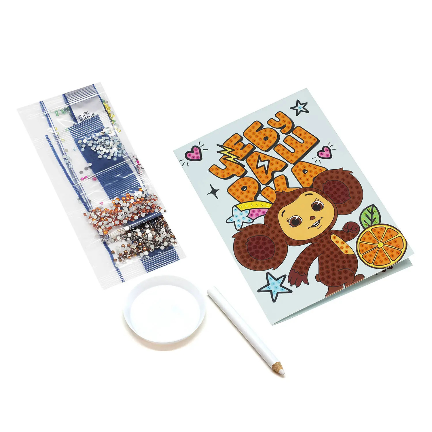 Открытка с очаровательным Чебурашкой в формате "укрась и подари" подарит радость и веселье самым близким! Страз в комплекте оживят красочную иллюстрацию ярким блеском. Творчество-антистресс поможет расслабиться и забыть о повседневных заботах. Процесс создания позволит улучшить мелкую моторику рук и станет интересным хобби для взрослых и детей. Уютный подарок и медитация 2в1!