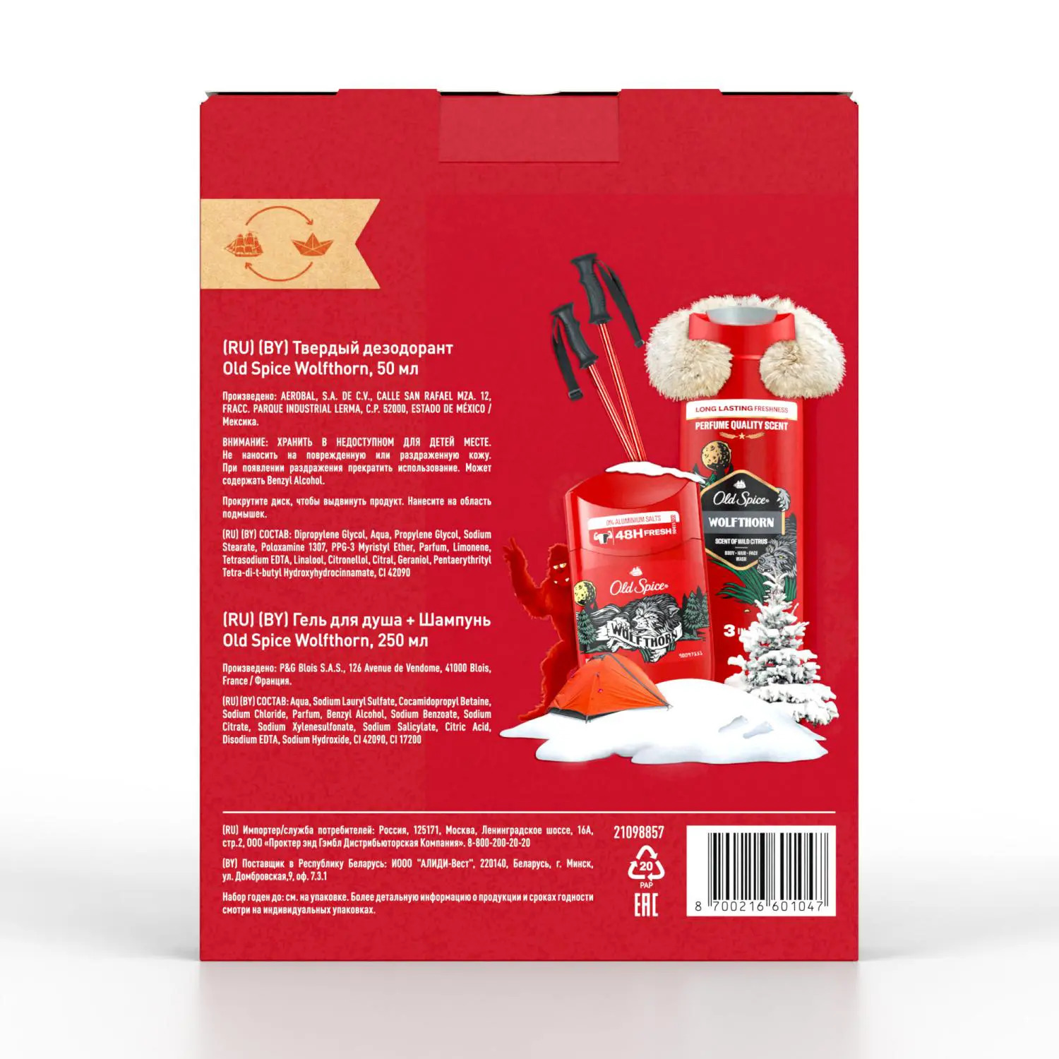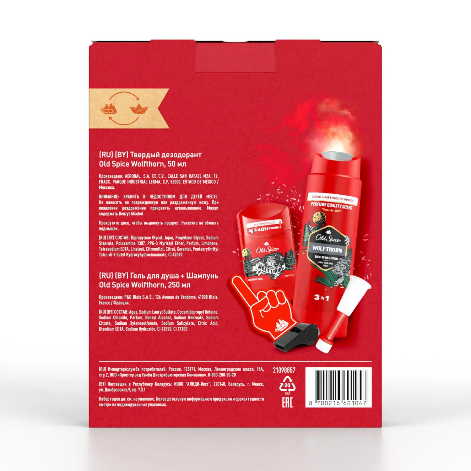 Подарите мужчине свободу. Свободу быть собой.Мужской набор Old Spice "Wolfthorn" включает в себя дезодорант-стик 50 мл и гель для душа + шампунь 3в1 250 мл. Это не просто набор для мужчин, это — секретный инструмент, который даст возможность освободиться от всего лишнего, оставляя неприкрытую мужественность.