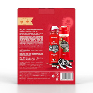Подарите мужчине свободу. Свободу быть собой. Мужской набор Old Spice Wolfthorn включает в себя дезодорант-спрей 150 мл и гель для душа + шампунь 3в1 250 мл. Это не просто набор для мужчин, это — секретный инструмент, который даст возможность освободиться от всего лишнего, оставляя неприкрытую мужественность. Освежающая пена геля для душа и шампуня, как волной, смоет все сомнения, а аэрозольный дезодорант с нотами цитрусов и удачной охоты раскроет самые хищные стороны мужской натуры, придав стойкую уверенность в себе. Подарок мужу? Брату? Папе? Или внучатому племяннику? Мужской подарочный набор на любой праздник: на Новый год, 23 февраля, день блогера, инженера или день любителей полежать на диване. Подарочный набор для мужчин Old Spice поможет мужчине быть неотразимым каждый день, без всякого повода. *Набор может прийти в одном из двух вариантов дизайна. Внимание: хранить в недоступном для детей месте. не наносить на поврежденную или раздраженную кожу. при появлении раздражения прекратить использование. избегать попадания в глаза. при попадании в глаза промойте их водой.Состав: