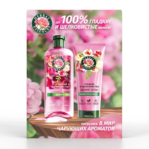 Подарочный набор шампунь и бальзам для волос Herbal Essences Аромат розы Гладкие и Шелковистые. Насладитесь миром в розовых оттенках.Шампунь для волос 250 мл улучшит состояние сухих волос, делая их мягкими и шелковистыми, а головокружительный аромат розы поднимет настроение и поможет достичь внутренней гармонии. Уникальная технология бальзама для волос 180 мл позволяет использовать средство 2 способами: смываемое (нанесите от середины длины до кончиков, затем смойте) и несмываемое (нанесите от середины длины до кончиков и оставьте на волосах).