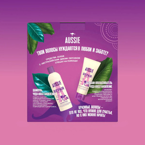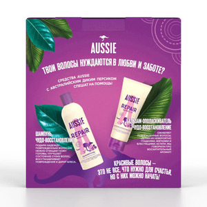 Подарочный набор шампунь и бальзам для волос Aussie (Осси) Восстановление с австралийскими суперфруктами. Не теряй надежду на спасение своих волос. Шампунь для волос 300 мл и бальзам для волос 200 мл Aussie Repair Miracle превратит сухие поврежденные волосы в мягкие, блестящие и сияющие. Попробуй всю коллекцию средств с экстрактом австралийского дикого персика. Aussie - это Австралия, оригинальные австралийские ингредиенты и волосы, которые запрыгают от счастья.Косметический набор можно использовать как отличный подарок женщине, девушке, маме, сестре, бабушке, подруге, коллеге, а также его можно использовать как хороший подарок на Новый год, 8 марта, день всех влюбленных, на день рождения, 14 февраля, новогодний подарок.