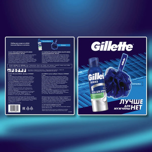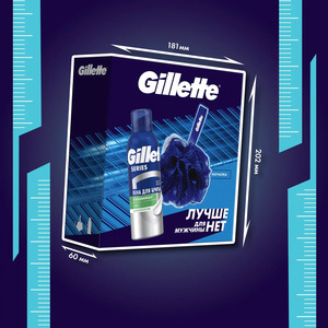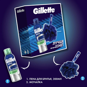 Комплектация: успокаивающая пена для бритья Gillette Series, 200мл и мочалка.