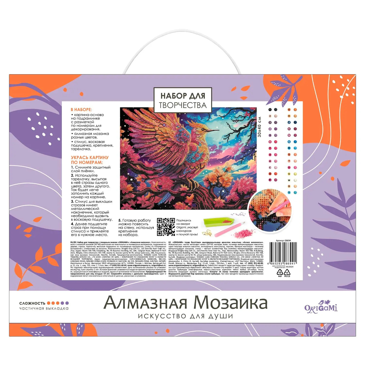 ORIGAMI Алмазная мозаика Волшебная птица 30*40см